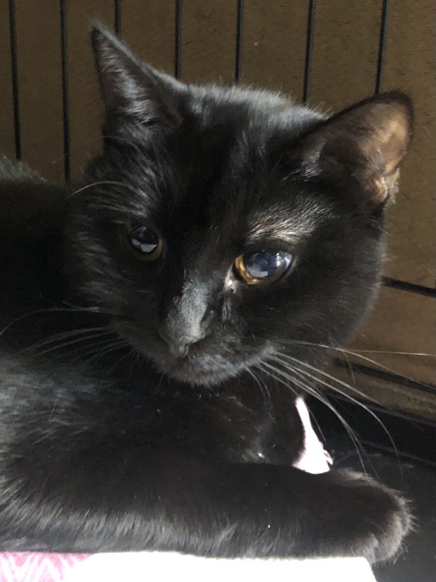 Глаза как оттенки янтаря. Чёрная от носа и до кончика хвоста Белатрис в добрые руки