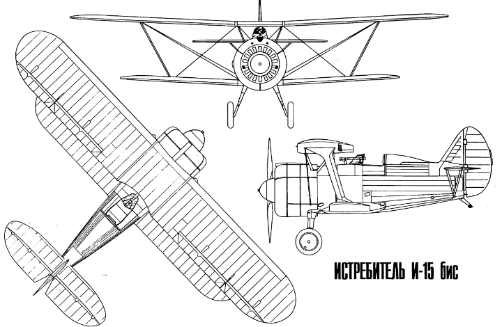Почти все самолеты этого семейства, начиная с 1933 г., имели конструкцию верхнего крыла, выполненную в виде "чайки". К вниманию краткая история единственного среди них "чистого" биплана - самолета-истребителя И-15бис.
