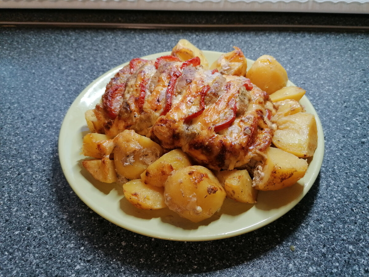ВКУСНАЯ И НЕЖНАЯ МЯСНАЯ ГАРМОШКА ИЗ СВИНИНЫ С ПОМИДОРАМИ И СЫРОМ В ДУХОВКЕ.