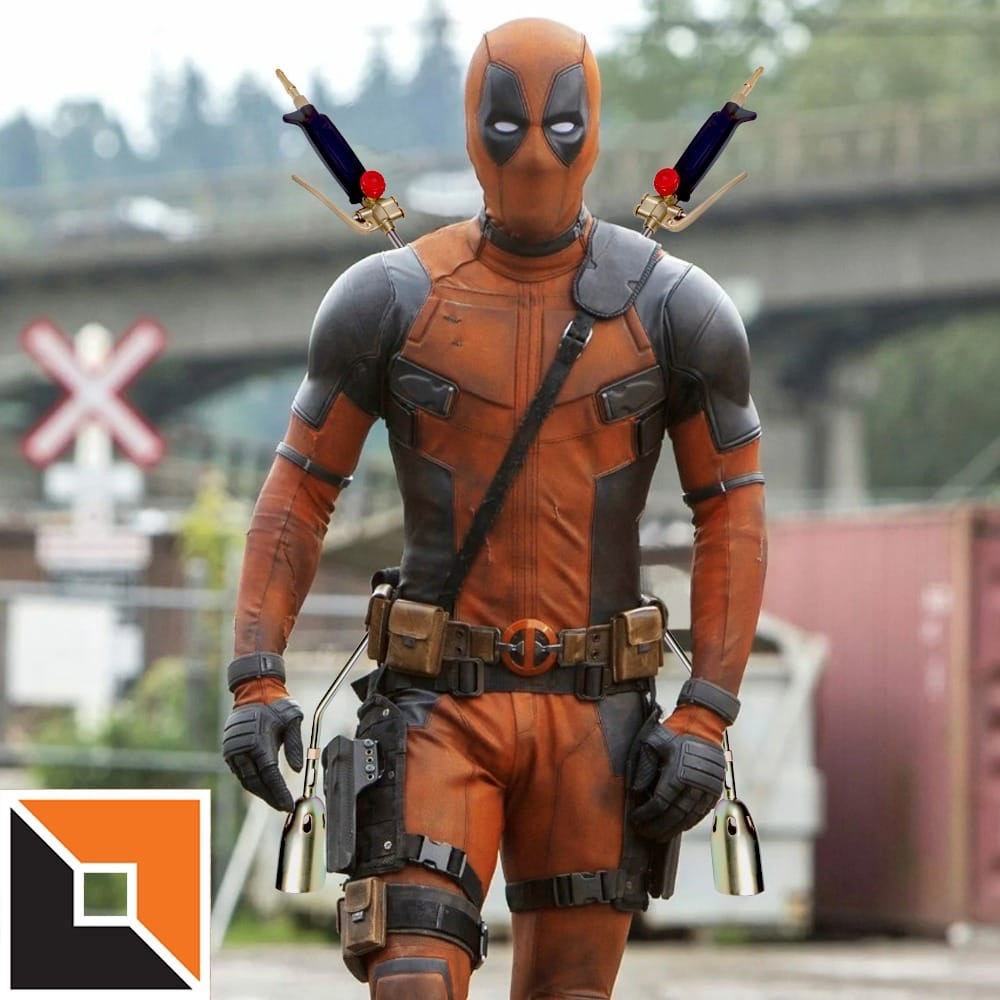 Дедпул обзавёлся нашими мощными газовоздушными горелками КОРУНД ГВК-1000В, Д.50 Теперь он может пакостить и спасать мир с огоньком Артикул: 5916 https://foxweld.ru/products/item/gorelka_krovelnaya_gazovozdushnaya_korund_gvk_1000v_d_50_pr_vo_foxweld_knr/