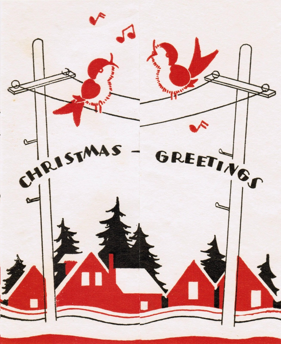 Рождественские и новогодние открытки всегда отражают эпоху. Ангелочки на дореволюционных открытках или рабочие на советских открытках воспринимались спокойно и естественно, так как они легко вписывались - в свои временные рамки. Стиль арт-деко распространился по Франции в 1920-е годы, а в 1930-1940-е уже шагал по всей Европе. Для него было характерны смелые геометрические решения, смешение стилей, этнические узоры, связанные с геометрией рисунка, а еще - особый шик, элементы роскоши. Гибкие, словно подвижные линии стиля нашли свое отражение на рождественских открытках, на которых изображены конькобежцы. Веточки деревьев кажутся вырезанными из бумаги и выглядят декоративно. Взрослые дамы и девочки одеты с особой изысканностью. И даже переполненные корзины в руках и ёлочка на плече не делает фигуру менее женственной. Еще раз открытка, на которой есть коньки и лед, и снова на ней запечатлен развевающийся шарф. Две фигуры - матери и ребенка - но и здесь даже детская одежда отчасти напомин