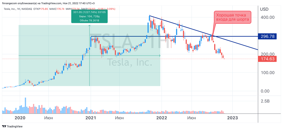 Сегодня хочу поделиться с вами ещё двумя цитатами знаменитых финансистов. Первая цитата американского трейдера и писателя Джека Швагера: «Рынки не беспорядочны, потому что они основываются на человеческом поведении». Вторая и одна из моих любимых, цитата экономиста Джона Кейнса: «Рынок может оставаться иррациональным дольше, чем вы сможете оставаться платежеспособным». Проще говря – рынком правят эмоции! Движение цены возникает из-за дисбаланса между покупателями и продавцами, основанном на эмоциях, такими как страх и жадность. Поэтому, многие профессионалы потеряли деньги на шортах акций Tesla. Напомню, в 2020-2021 гг. розничные инвесторы раздули котировки производителя электромобилей, в результате чего, они выросли более чем на 1500%. При этом, оценочный мультипликатор P/E находился выше 1000х. Если помнить, что рынком управляют человеческие эмоции, то можно на этом заработать. В данном примере, нужно было держать акции Tesla используя технических анализ и позитивный новостной фон. Н