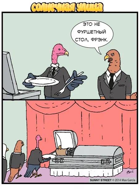 Сегодня мы хотим представить вашему вниманию подборку комиксов не для всех, а именно, комиксов с чёрным юмором, который может не понравится части читателей, о чём мы сразу предупреждаем. А для тех, кто любит чернуху - милости просим к нашему юмористическому застолью! Приятного аппетита, то есть просмотра!)))) Перепутал мероприятия Целиком отдаются работе Полностью согласен Зомби огуречного мира А что там за ширмой?) Сходу не понять, где лицо, а где.... Старший сын Жизненный цикл Гастрономические особенности Загар прямо до корочки Дорогие друзья, если вам понравилась подборка, поддержите нас подпиской на канал, это очень важно для его развития, а так же ждём ваших королевских лайков и царских комментариев!)