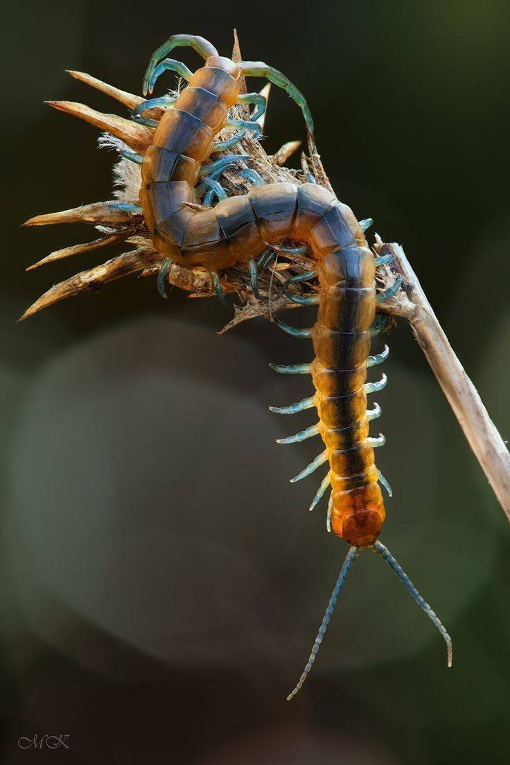 Сколопендра на фото является загадкой для непосвященных –трудно разобраться, где первая, где последняя пара ног. Насекомые непрерывно растут, проходя через этапы линьки. Если случается потерять отдельные лапки, они отрастают заново.
