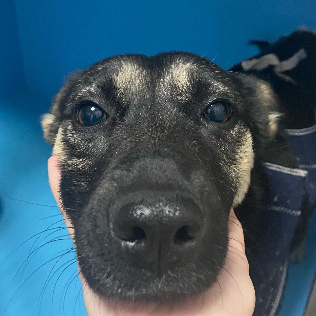 Тина. Море боли и отчаяния в ее глазах... Она замерзала настолько что кобелек со стройки привел ее в свою будку (правда она больше похожа на картонный коробок, но это все что у него было) и поделился с нею теми крохами тепла, что у него самого - бездомного пса были... Когда толпы людей видели несчастную малышку короткошерстную всего 17 кг на тонких дрожащих лапках, все шли мимо... Помог ей только такой же бездомный пес... Он живет при временной стройке и у него там короб. В один день строители заметили, что теперь от снега в самой глубине лежала она подальше от засыпающегося снега... Спасибо этим мужчинам, они привезли ее на программу стерилизации, понимая что 12 щенков на стройке не нужны, а они рано или поздно появятся. (Почему же этого не понимают миллионы других мужчин со строек, промзон, гаражей, автостоянок, баз...? !!!!!!) Тина сразу показала себя умницей. Полностью доверяла врачам, терпела все процедуры, и даже терпела туалетные дела в боксе до улицы... Она просто невероятна