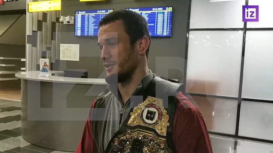 Боец Усман Нурмагомедов вернулся в Махачкалу с чемпионским поясом Bellator