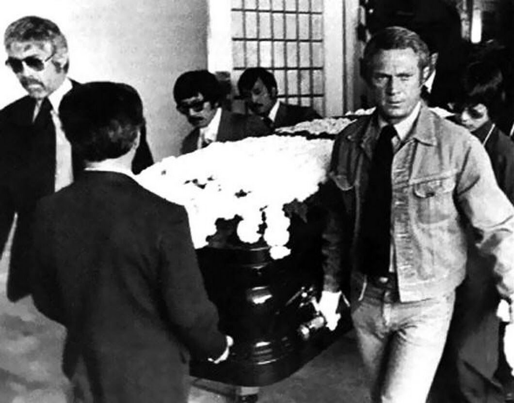Гроб несли Джеймс Коберн, Стив Маккуин, Дэн Иносанто, Таки Кимура, Питер Чанг, брат Брюса Роберт.