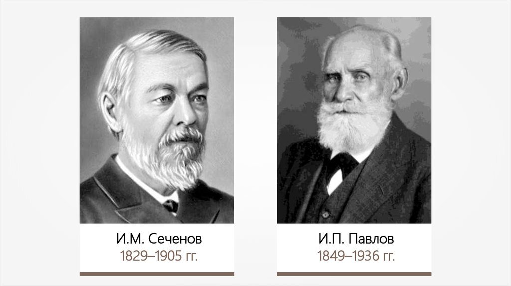 Мы уже упоминали, что естественнонаучная разработка и обоснование рефлекторной природы всех видов психической деятельности является заслугой русской физиологии, и прежде всего двух ее великих представителей — И.М. Сеченова (1829— 1905) и И.П. Павлова (1849-1936).