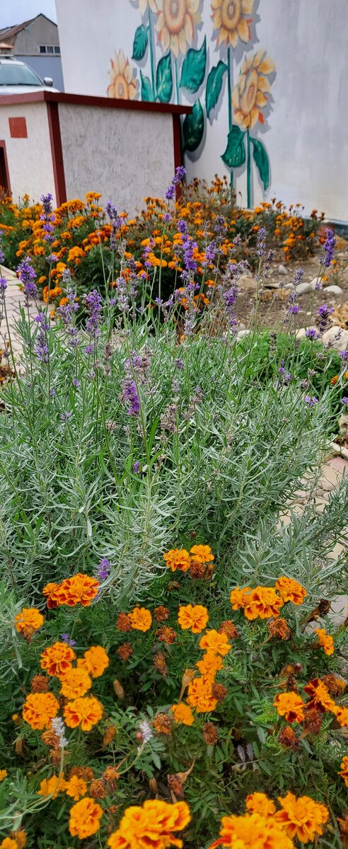 Последние цветы в саду. Вот постепенно и заканчивается красота.Но посмотреть еще есть на что. У лаванды второе дыхание.Посадила я ее весной.За лето она разрослась.Увеличилась раза в 4. И вот решила зацвести второй раз в этом году. Летом,когда идет массовое цветение лаванды мы с друзьями ездили на заброшенную лавандовую плантацию и собрали цветы.Я сделала букетики и саше,которое дарила в виде сувениров.Для саше нашила мешочки разных размеров и форм. Пышнее всех цветут бархатцы.Даже приходится обрезать соцветия,которые залезают на дорожку и мешают проходу.Жалко,а что делать! Есть желтые,есть оранжевые.Есть пушистые и не очень. Это очень неприхотливое растение.Размножается практически без участия человека.Там где они росли,на следующий год будет такая же клумба самосевом. Хризантема кустовая.Ее надо подвязать,но у меня руки не дошли и в таком состоянии есть свой шарм.Решила оставить как есть. Есть хризантемы низкорослые,но они уже практически все отцвели.Они очень красивы.Цветут большими