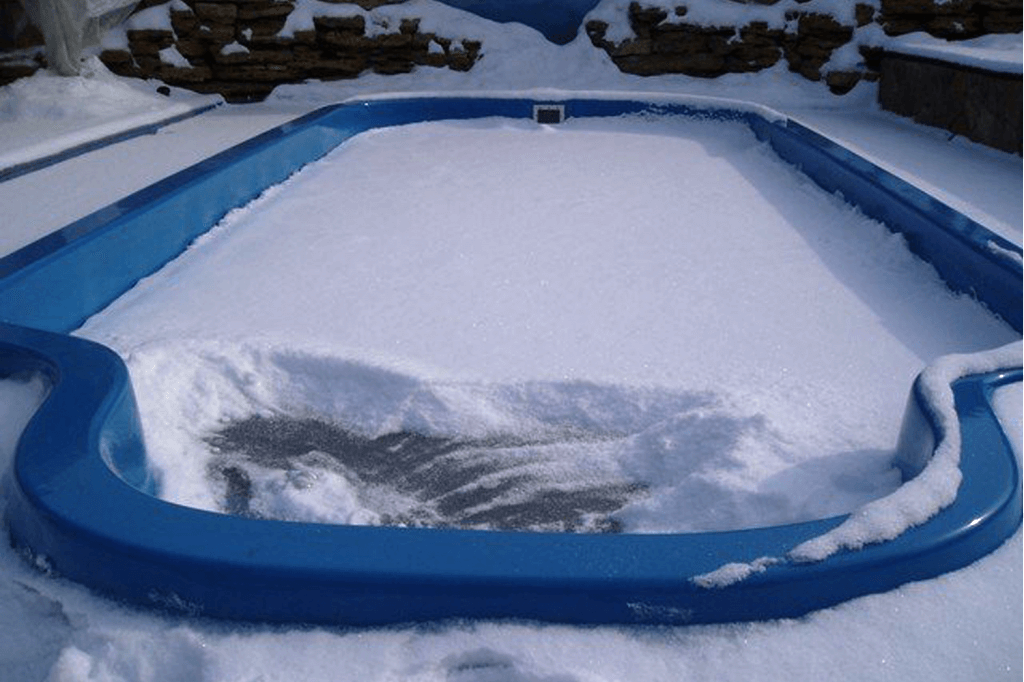 При отрицательных температурных показателях вода в бассейне зимой смерзается в монолитную глыбу. Лед имеет свойство расширяться (около 10% от исходного объема жидкости), как и промерзший грунт, поэтому замерзшая вода в бассейне противодействует давлению грунта. Равномерное двухстороннее давление уравновешивает выдавливающие нагрузки, сохраняя корпус емкости без повреждений.