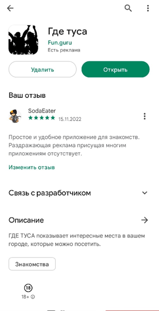 Прошу извинить меня за пост, так как он не по теме блога, но обойти это приложение стороной я не могу. В этом посту я расскажу немного об этом приложении, которое поможет вам быть в центре всех тусовок города. Приложение «Где туса» 1. Заголовок прост, но по своему роду уникален. Из названия приложения можно сразу догадаться об его функциональности, но описание было добавлено для полноты информации заинтересованного пользователя. Информация об обновлениях также не осталась в стороне: последнее обновление было 15 сентября 2022 года, а это значит, что разработчики не оставили свое детище, и во всю работают над ним. Приложение находится в категориях «Знакомства» и «Для всей семьи» и имеет возрастной рейтинг 18+ (немного странно видеть рейтинг 18+ и категорию «Для всей семьи» вместе) 2. ASO приложения «Где туса»: