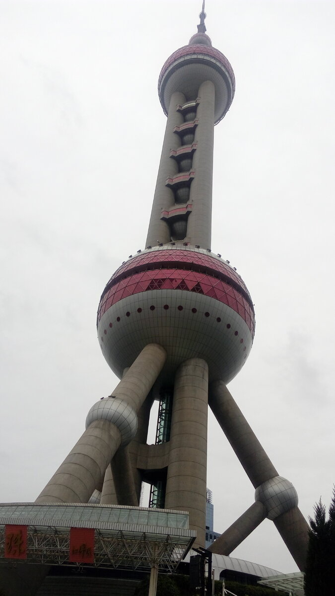 Телебашня «Жемчужина востока» или «Восточная жемчужина» — третья по высоте в Азии башня, а в мире занимает пятую позицию. Её видно практически из всех точек Шанхая. Привлекает внимание не только своим размером, но и архитектурным решением. Внутри расположен целый ряд развлекательных сервисов для туристов: обзорная площадка с прозрачным полом, музейная экспозиция, вращающийся ресторан и другие места. Общая высота конструкции составляет 468 м, но на верхушку попасть нельзя. Самая высокая смотровая площадь расположена на 351 м в капсуле. Всего установлено 11 сфер, из них выделяются две больше — 50 м и 45 м. Они соединены тремя цилиндрическими колоннами, каждая из которых 9 м диаметром. Внутри них находятся номера «Космического отеля». Башня стоит на опорах, которые прикреплены к первому этажу. Между ярусами туристы передвигаются на двухэтажном лифте, который вмещает сразу 50 человек. С наступлением темноты снаружи включается яркая подсветка, и сферические части действительно похожи на п