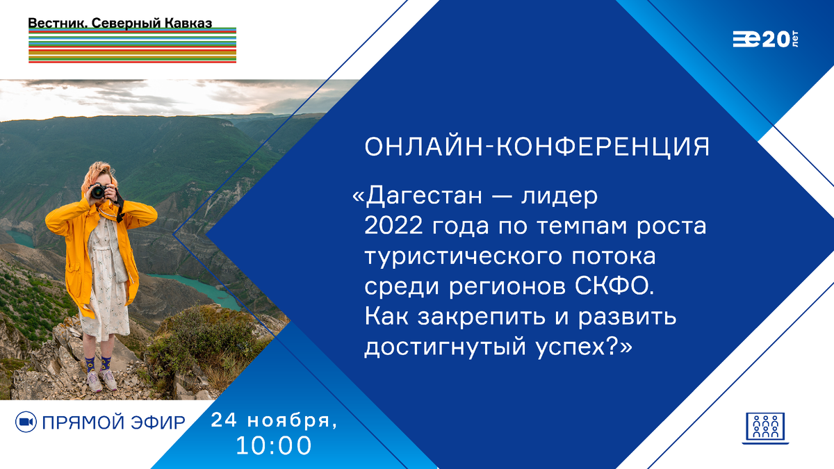 В четверг, 24 ноября,в 10.00 (мск) на базе информационно-аналитического журнала «Вестник. Северный Кавказ», издаваемого международным холдингом «ЕвроМедиа», состоится онлайн-конференция на тему «Дагестан — лидер 2022 года по темпам роста туристического потока среди регионов СКФО. Как закрепить и развить достигнутый успех?» (на платформе Zoom). Вопросы, вынесенные для обсуждения: 1. Дагестан — главное туристическое открытие 2022 года в масштабах Северного Кавказа и одно из главных — в масштабах России. Чем это можно объяснить? 2. Место Дагестана на современной туристической карте России. Важные преимущества республики, привлекающие гостей: наличие собственных морских пляжей на Каспийском побережье, раскрученные природные красотыв сочетании с возможностями активного отдыха, богатое культурно-историческое наследие, позволяющее формировать интересные и разнообразные экскурсионные программы. Как эти преимущества используются сейчас, а также как можно использовать их в кратко-, средне-, долг