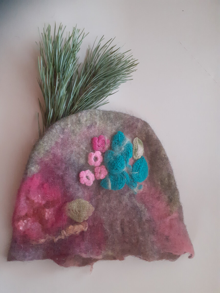 И снова - здравствуйте! Всем мира, добра и отличного настроения! Итак, как я уже говорила - осень и зима - лучшее время заняться рукоделием. Близится Новый год, а значит - время дарить подарки. Решила я начать с банной шапочки. За основу взяла романовскую шерсть и...пригодились заготовки для декора, которые вязала летом. Думаю, эта шапочка придаст настроения ее владелице.