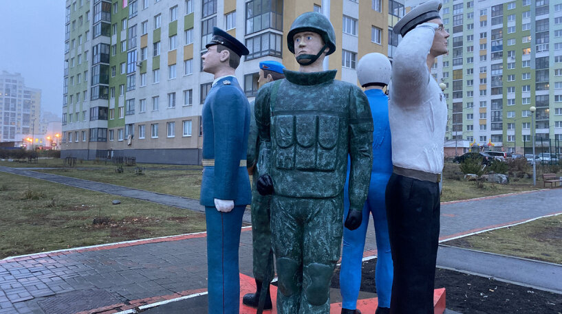 Подростки оторвали автомат у скульптуры пехотинца в Академическом. К семье одного из них пришла полиция