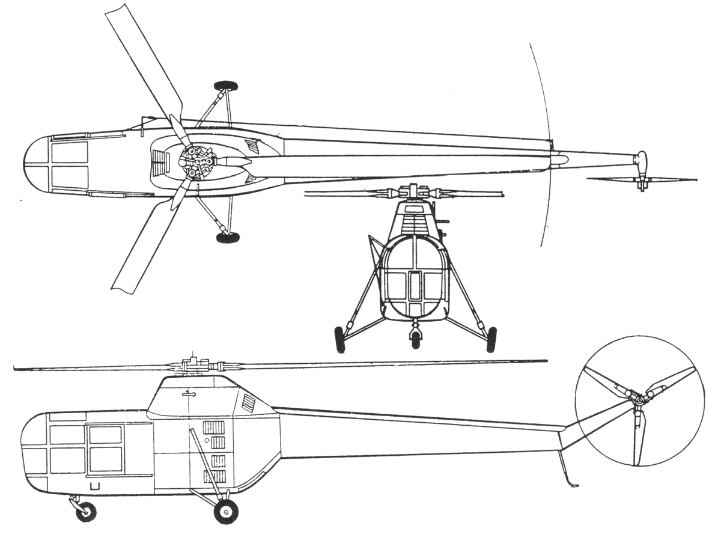При весе вертолёта 2090 кг: скорость максимальная при горизонтальном полёте по прибору -170 км/ч (по Постановлению Совета Министров СССР № 4001-1369сс от 12.12.47 г. должна быть в пределах 150-200 км/ч); потолок динамический - 5250 м; высота, достигнутая в динамическом полёте - 3400 м; высота, достигнутая при вертикальном подъеме без поступательной скорости - 2000 м; время набора высоты в динамическом полёте: Н=1000 - 3 мин., Н=2000 - 6 мин., Н=ЭООО - 10 мин.; время набора высоты на вертикальном наборе без поступательной скорости: Н=2000 - 8,2 мин. расход горючего на висении - 60 кг/ч; планирование на авторотации производилось при скорости по прибору 90 км/ч, скорости снижения 5-6 м/сек, углу установки лопастей - 30 градусов, оборотах главного ротора 210 - 215 об/ мин; планирование с работающим двигателем производилось при скорости по прибору 90 км/ч, скорости снижения 5-6 м/сек; оборотах мотора 1800 об/ мин. При полётном весе вертолёта 2140 кг: скорость по прибору, достигнутая в мото