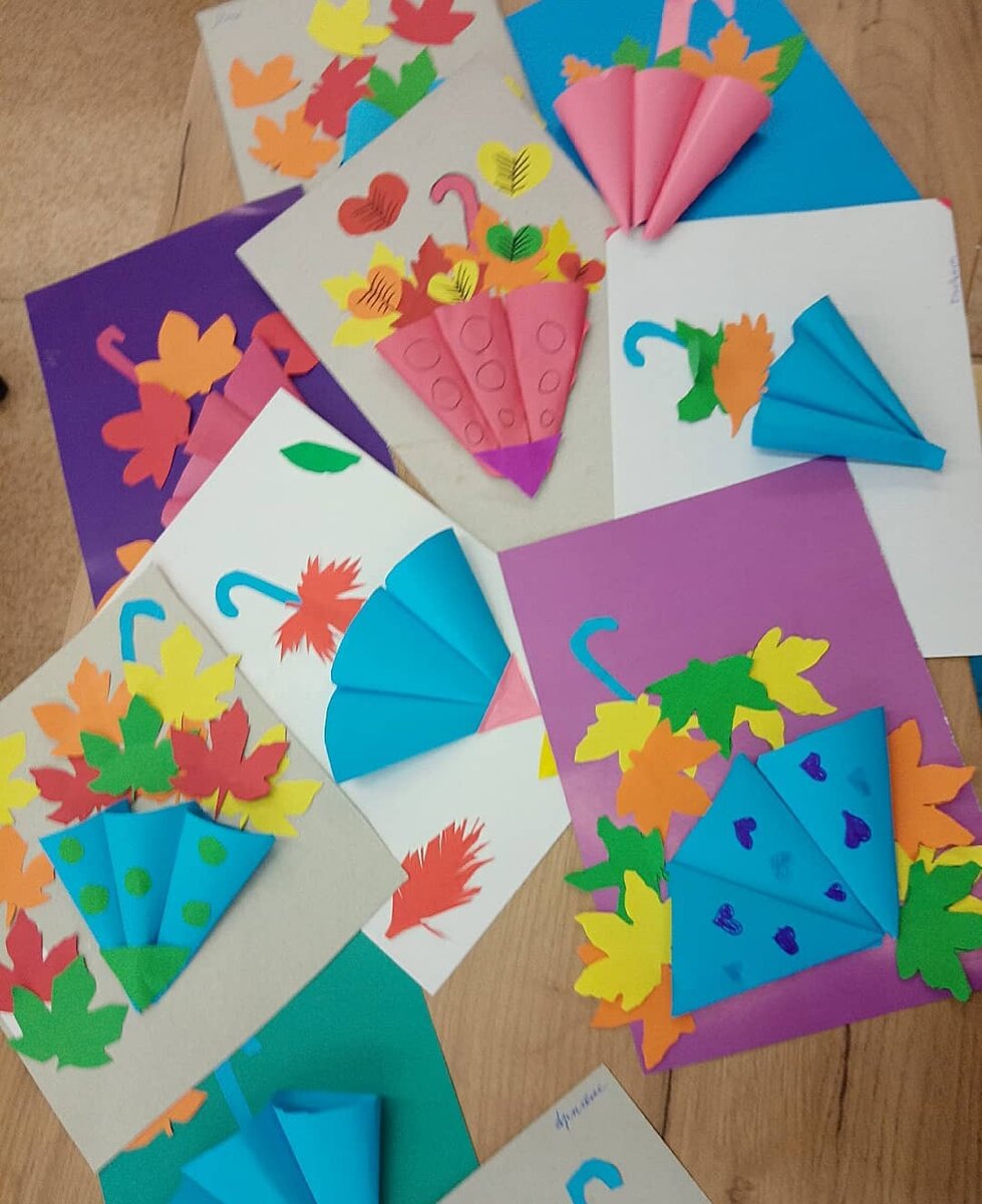 Так как до конца осени остаются считанные дни , успейте сделать поделки осенней тематики . Предлагаю выполнить зонтики с осенними листами . Мои ребятам понравилась такая идея и они выполнили с удовольствием.
