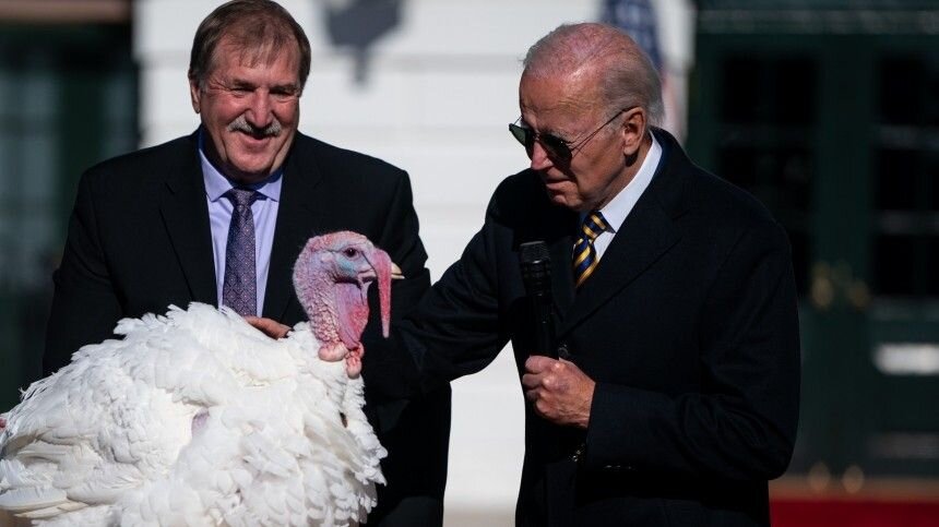 Президент США оконфузился во время ужина в честь Дня благодарения, на котором присутствовали американские военнослужащие. Немногим ранее он вдруг пытался поговорить с индейкой. Фото: www.globallookpress.com / Jordan Tovin; 5-tv.ru Президент США Джо Байден оконфузился во время ужина по случаю Дня благодарения, на котором присутствовали американские морские пехотинцы. Их верховный главнокомандующий не смог надеть фартук без посторонней помощи. Неприятный для главы Белого дома инцидент попал на видео. Торжественное мероприятие проходило на борту авиабазы морской пехоты Черри-Пойнт в Северной Каролине. Джо Байден решил самостоятельно разложить праздничную индейку по тарелкам, но надел фартук задом наперед. Один из военных обратил на это внимание и вместе с официантом помог главе государства переодеть фартук. Байден поблагодарил пехотинца за бдительность дружеским хлопком по груди. К слову, немногим ранее Джо Байден попытался вступить в диалог с индейкой на территории комплекса Белого дома.