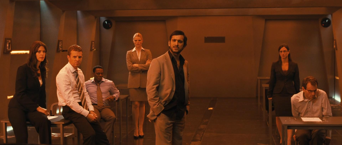 Даже в 'Телефонной будке' Коллина Фаррелла пространств, включенных в процесс съемки картины, было включены больше. Но, от 'минимизации съемочной площадки' (равной ~ метрам 50 квадратным) готовый результат не разочаровал дотошного меня. Никому не известные актеры: 4 девушки и 4 парня, разного цвета волос и расы, одновременно помогающие и противостоящие друг другу в этом необычном IQ-тесте на роскошную должность в компании, о которой и директоре которой никто из них ничего не знает + безъэмоциональный охранник и наблюдатель. Всего 10 уников, не нуждающихся в славе Стэтхема или Сталлонне, благодаря полному погружению в игру своих персонажей блестяще выполнили возложенную на них ответственность.
