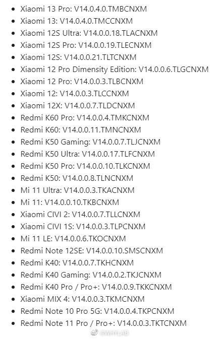 Многие фанаты Xiaomi с нетерпением ждут грядущее мероприятие бренда не столько из-за серии Xiaomi 13 (или Xiaomi 14, по некоторым данным), сколько из-за новой оболочки MIUI 14, которую компания начала тизерить на прошлой неделе. Сегодня по Weibo разлетелся список устройств первой волны, которые получат апдейт в самое ближайшее время. По большей части в него входят флагманские смартфоны (все модели серий Xiaomi 11, 12, 12S, MIX 4, Redmi K40, K50, а также некоторые "народные" модели вроде Civi и Civi 2, Redmi Note 10 Pro 5G, Note 11 Pro / Pro+ и Note 12. Также по Сети уже гуляет снимок Xiaomi 12S Pro с установленной MIUI 14 – вероятно, тестовой сборкой. Из коробки же MIUI 14 получат грядущие Xiaomi 13 (14) и троица Redmi K60.