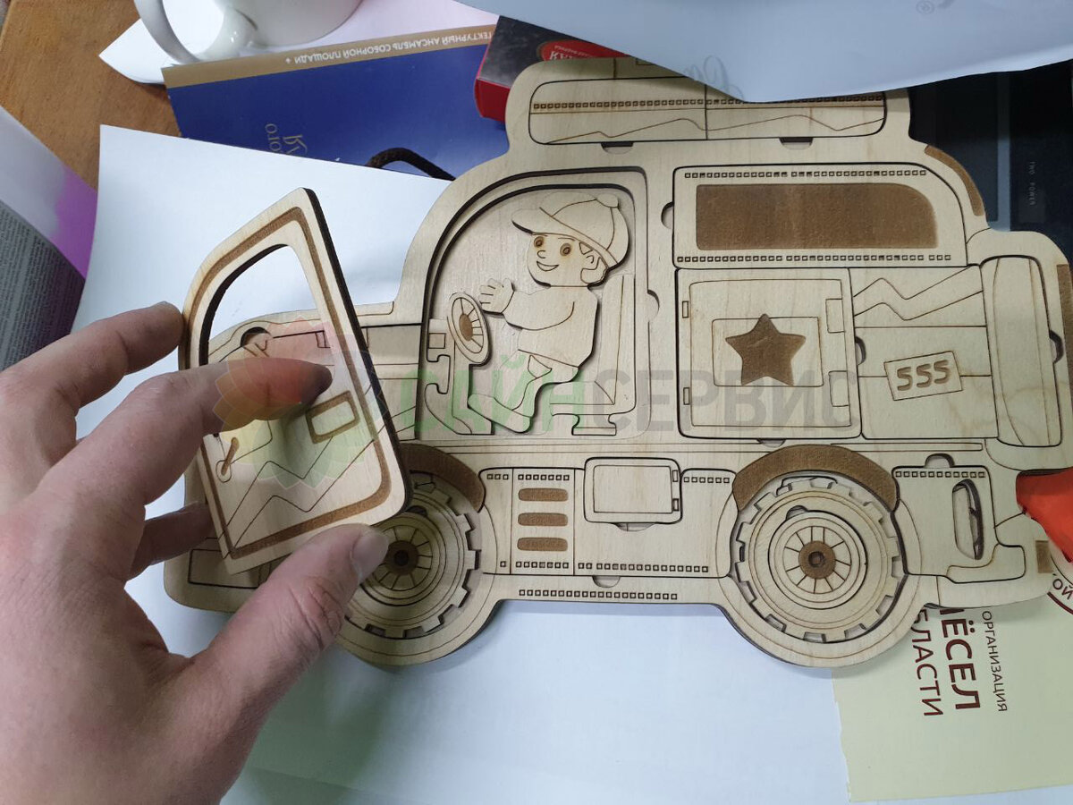 Установка сувенирного принтера Artis для компании-производителя детских игрушек, пазлов и фанерных коробочек.