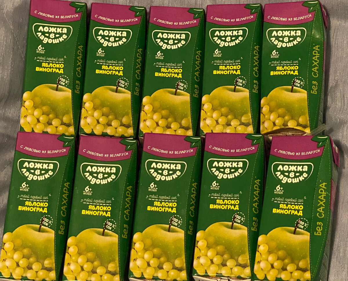 Раннее я рассказывала о выгодной скидке в Детском Мире: при покупке 5 соков + 5 аналогичных в подарок до 30 ноября. За 10 шт я заплатила 199 руб. Мой выбор пал на яблочно-виноградный сок без сахара фирмы «Ложка в ладошке». Сок яблочно-виноградный из белых сортов винограда осветленный восстановленный для детского питания для детей раннего возраста. Стерилизованный «ложка в ладошке». Продукт асептически упакован. Состав: сок яблочный осветленный (60%), сок из белых сортов винограда осветленный (40%). Пищевая ценность в 100 мл сока: Белки 0,3 г, углеводы 13 г, калий 162 г. 55 ккал. В одной упаковке 200 мл. Производитель заявляет, что в составе не содержится ГМО, ароматизаторов, консервантов и красителей. Я попробовала этот сок и мне он очень понравился. Вкусный, без мякоти и очень сладкий! Буду рекомендовать своим знакомым!