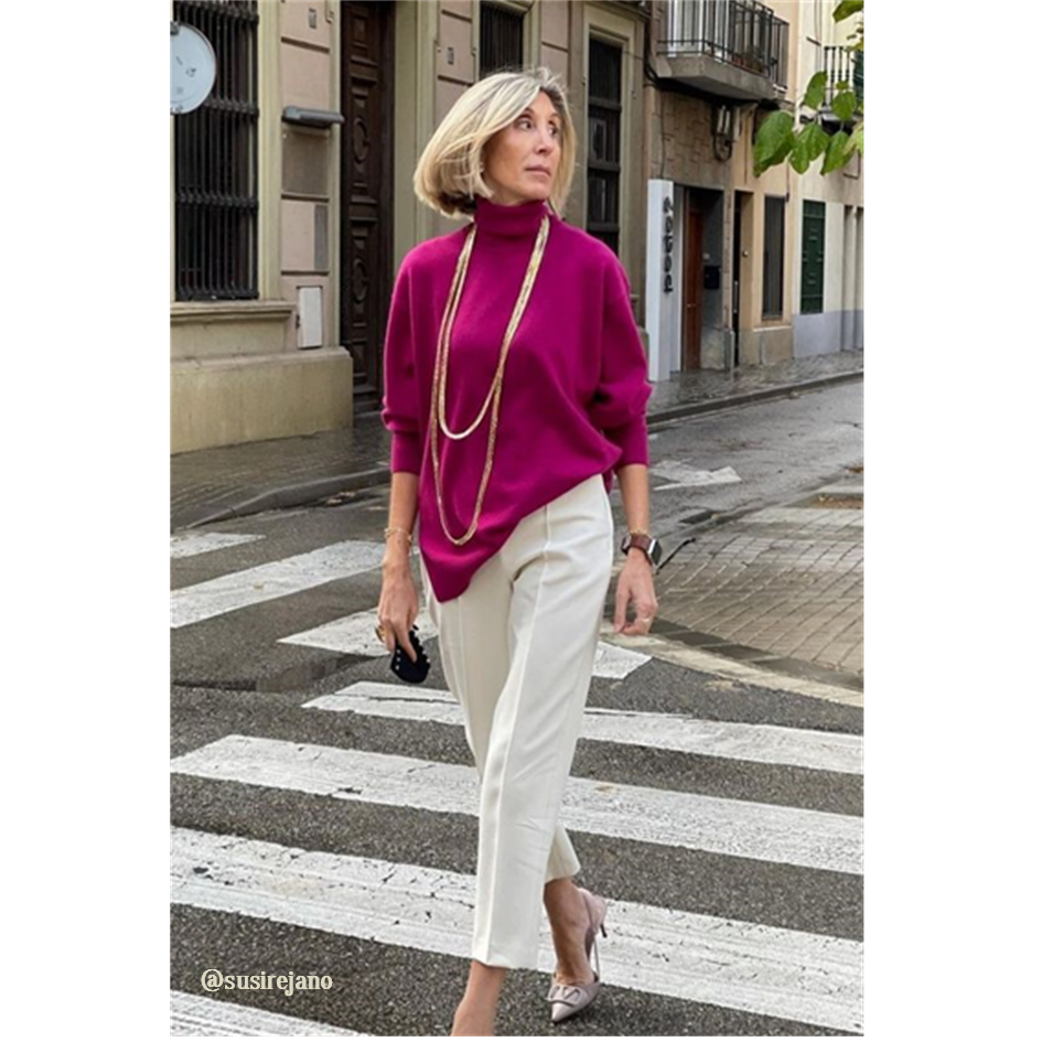 Время утепляться, а это значит, нам не обойтись без хорошего теплого свитера. Но как выбрать такой, чтобы было и тепло, и красиво, и стильно, и на фигуре сидел хорошо? И здесь есть свои нюансы и свои подводные камни. Первое, на что обращаем внимание – свитер должен быть достаточно свободным, никаких обтягов. Но об этом, я думаю, вы уже знаете. И далее еще несколько моментов: 1. Объемность Объемный свитер с крупной вязкой, безусловно, красив и интересен, но обратите внимание, что он будет очень полнить фигуру. И второй момент, с жакетом или верхней одеждой его уже не надеть. В то же время теплой осенью для самостоятельной носки - хороший вариант. А вот время свитер без объема легко можно носить как самостоятельно, так и в любой многослойности. 2. Длина Отметьте для себя, что самая лучшая и самая актуальная длина для свитера, а это значит, красивее показывает фигуру – либо удлиненный вариант (закрывает пах и ягодицы), либо укороченный (до талии или чуть ниже). А вот такая длина до паха