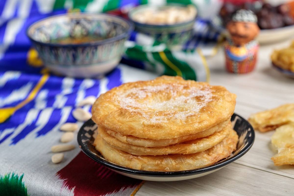 📖 Ингредиенты: - Мука - 400 г. - Яйцо - 1 шт. - Теплая вода - 120 мл. - Растительное масло - 30 мл. - Маргарин - 200 г. - Соль - 1 ч. л. - Раст. Масло - для жарки 🧑🏻🍳 Приготовление: 1. В теплой воде растворить соль. 2. В миске смешать муку, яйцо, половину всего растительного масла и соленую воду. Замесить тесто. 3. Тесто смазать оставшимся растительным маслом на 30 минут. 4. Тесто раскатать с помощью тонкой и длинной скалки в пласт толщиной 1-2 мм. 5. Смазать тесто растопленным маргарином, затем свернуть тесто в плотный рулет. 6. Рулет нарезать на кусочки шириной 7 см. 7. Стол и скалку слегка присыпать мукой и раскатать каждый кусочек теста в круглый пласт толщиной 2 мм и диаметром 22 сантиметра. Раскатанные лепешки сложить одну на другую. 8. В сковороду с толстым дном налить немного растительного масла, разогреть, выложить раскатанную лепёшку, накрыть крышкой. Обжарить с каждой стороны в течение 3-5 минут до золотистого цвета.