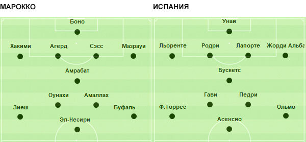 Серию же пенальти испанцы исполнили из рук вон плохо, не реализовав ни одной (!!!) из трёх попыток. Вышедший к «точке» первым Пабло Сарабия снова попал в штангу, а удары Солера и Бускетса парировал голкипер марокканской команды Боно. Его коллега по амплуа из рядов «красной фурии» Унай Симон взял только один пенальти из четырех. Итог этой удивительной серии - 3:0 в пользу сборной Марокко.