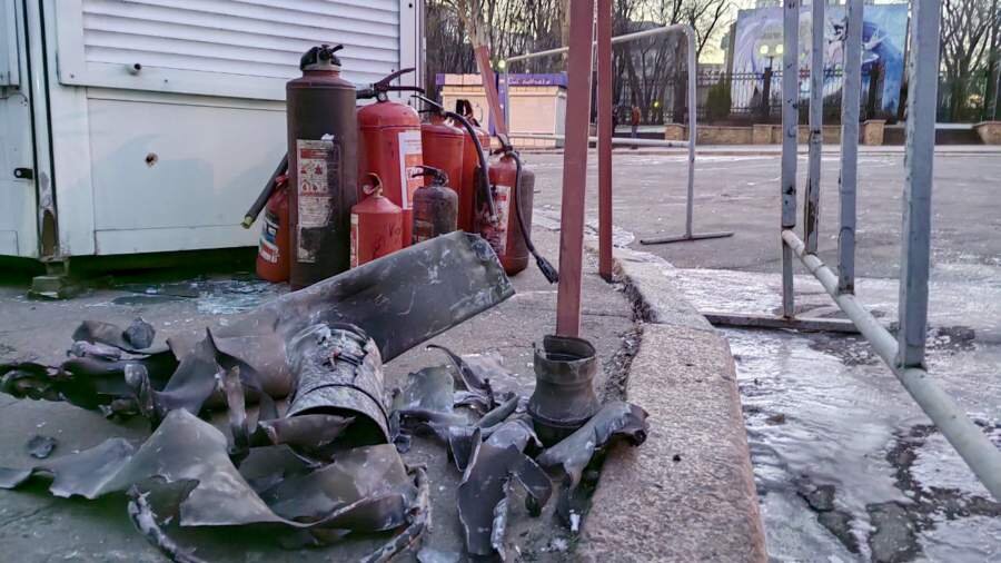Охранник с напарниками показывают мне пустые красные баллоны — их с десяток, выгребли все запасы. А еще осколки «градин», лежащие рядом.