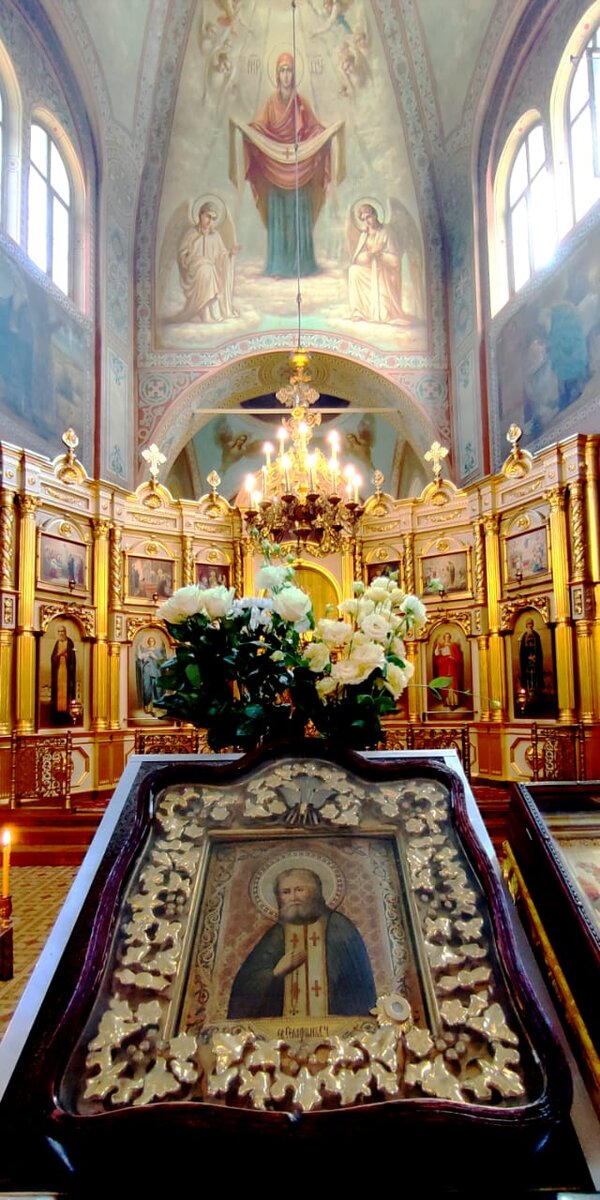 Настоятель храма преподобного Сергия Радонежского протоиерей Вячеслав Ковалевский рассказал: «В нашей семье очень почитается преподобный Серафим. В 1948 году художник Николай Сиваков, мой прадедушка, написал икону Серафима Саровского в дар дочери Галине, моей бабушке. На иконе есть подпись: «Дочери Галине». Память о преподобном Серафиме в советское время была под строжайшим запретом, а за хранение и написание его образа полагалось суровое наказание, вплоть до тюремного заключения. Но Господь уберег нашу семью. Икона по сей день хранится в нижнем храме. В верхнем храме прихожане могут поклониться иконе преподобного Серафима с частицей его святых мощей.