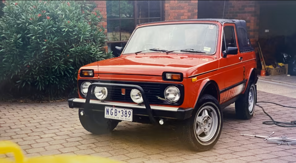 Моим первым настоящим автомобилем была Lada Niva Cabriolet 1989 года выпуска, красного цвета с черной виниловой крышей, на серебристом литье BWA. Я говорю "настоящий", потому что есть одна история о темно-синем Holden Camira, который был куплен за 200 долларов у парня из ночного клуба Jooce в Рингвуде, где сделка не включала в себя никаких документов и подписей.