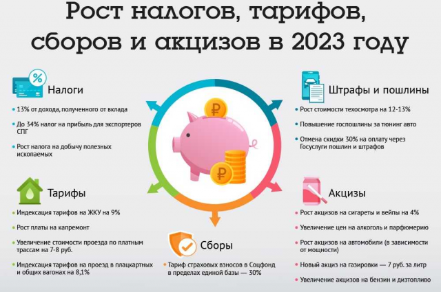 Налоги, штрафы и сборы, которые вырастут в 2023 году. Инфографика