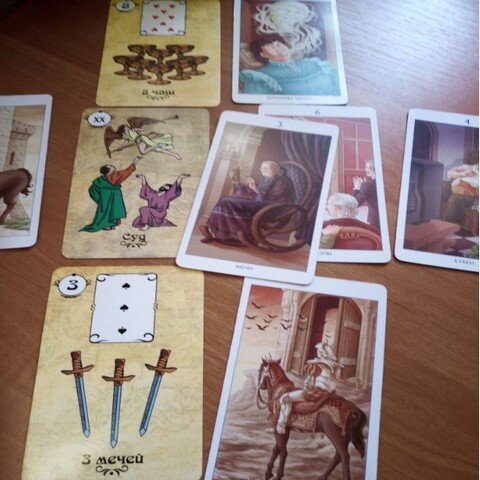 Представителям данного знака Зодиака придется набраться терпения, потому что проблемы коснутся всех сфер жизни. Но они вполне решаемы, так что не стоит отчаиваться. Начало недели Вы вступаете в эту неделю эдаким Рыцарем мечей – храбрый, отважным воином, способным сокрушить врага. А все потому, что кто-то решил посягнуть на плоды вашей интеллектуальной деятельности и физического труда. Дела, работа, бизнес Ваши дела приобретают конкретный результат, говорит Восьмерка кубков. Но Рыбы не собираются останавливаться на достигнутом. Вам нравятся ваши обязанности, и вы с удовольствием их исполняете. У предпринимателей активно развивается бизнес, особенно в торговле. Кто-то даже планирует расширять сферу своего влияния. Но вот рядом с вами находится Королева мечей. Она очень предприимчива и хитра, никогда не упустит своей выгоды. Она полностью контролирует ход ваших дел, так как материально заинтересована в их успехе. Финансы На данную сферу выпал старший аркан Суд, и это не есть хорошо. Состо