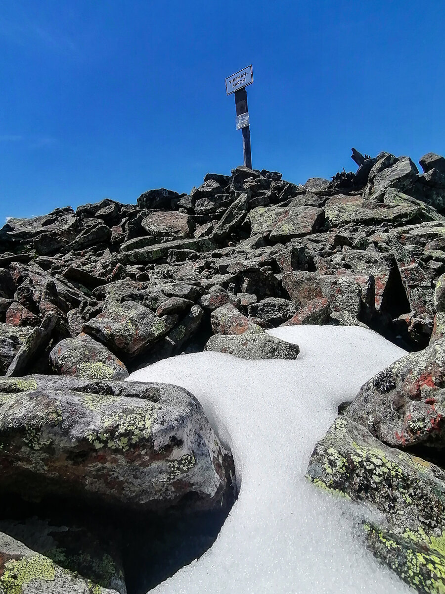 Прошло еще каких-то полчаса и вот мы на вершине Уныман-Барона. Конечно, мы не единственные, кто добирался до сюда - когда-то здесь даже была станция, от которой сейчас осталась только груда иссохшихся деревяшек.