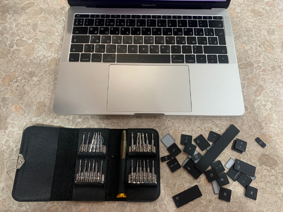 Купил я значит сей девайс в 2018 году. Это был мой первый опыт с Apple, поэтому радости не было предела: мышь не нужна, потрясающий retina экран и прочие стандартные вещи… И всё шло хорошо, но однажды, за ужином, смотря фильм, моя кружка с кофе вылилась прямо на клавиатуру(. Мак сразу же отрубился с неестественным звуком. Я в шоке, что делать, куда бежать? Ноут естественно не включался(знаю не стоило даже пробовать пока не просушишь, но я не смог остановиться). И так как раньше у меня был небольшой опыт в ремонте телефонов, я решил всё разобрать и просушить. Это довольно не сложно, т.к. на ютубе много туториалов. Так же появилась проблема с залипанием клавиш(кофе всё таки липкий). итог: Мак разобран, просушен, клавиши пока ещё старые(заказал новые на Али, цена вопроса была 800р). Нажимаю клавишу включения и вуаля, он заработал) Счастью не было предела, я сэкономил 30к на ремонте. В последствии поменял клавиши и начал глючить аккумулятор, его я тоже заменил на китайский аналог(ц