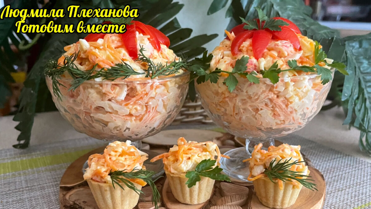Если вы не делали такой салат из крабовых палочек, приготовьте. Делать 10 минут, а съедается он за 5 минут (подойдёт для тарталеток)