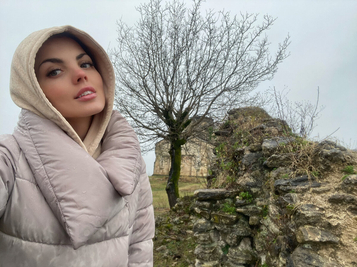 Преодолев неровности дороги, мы попали к Бедийскому собору, которому 1.000 лет и который выдержал испытание временем и бомбежку грузинами. Это то самое место, в которое не возят на экскурсии. Добраться можно либо как мы, на своём авто, либо договорившись с таксистом. Сейчас в соборе проводятся реставрационные работы, но это не помешает вам осмотреть его. Вокруг особая атмосфера, тишина и красивые пейзажи. В непосредственной близости от храма можно увидеть руины старинного дворца и других построек, где когда-то жили бедийские епископы. Дождь не стал нам помехой в изучении окрестностей собора. А на обратном пути мы нарвали с деревьев мандаринов, были все промокшие и грязные, но зато такие счастливые.