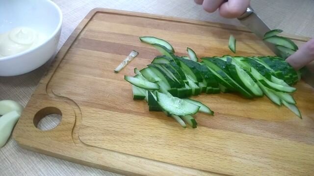 Отличное блюдо для быстрых перекусов, вкусный и питательный. Благодаря содержанию в нем фасоли достаточно сытный. 🔥 Лучшее в телеграм: Посмотреть Ингредиенты: Способ приготовления: Огурец нарезаем небольшой соломкой, для этого разделите сего вдоль на четыре части, затем режьте поперек небольшими кусочками. Копченую куриную грудку режем на небольшие пластики. Консервированную фасоль откиньте на дуршлаг и промойте, после чего добавьте в салат. Смешиваем ингредиенты с корейской морковью, добавляем майонез и пропускаем чеснок через пресс. Последним этапом добавляем зелень, это может быть, петрушка, укроп, или любые другие ваши любимые травы. Очень солидно смотрится это блюдо если подать его на листе салата.