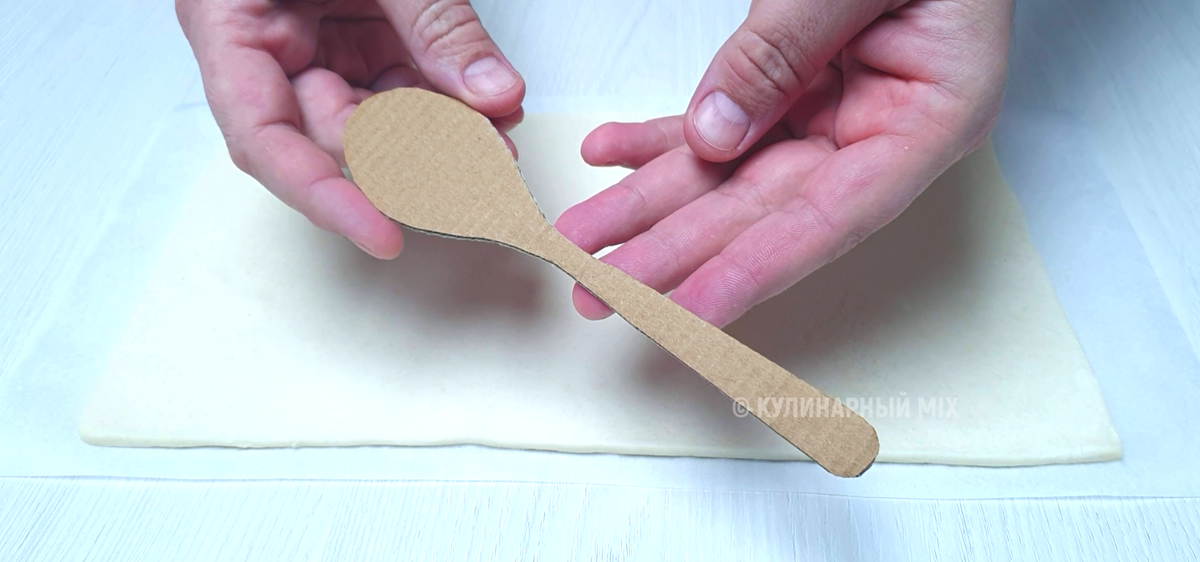 Когда я приглашаю гостей, всегда стараюсь готовить не только вкусные, но и необычные блюда. Люблю экспериментировать с закусками. Они должны выглядеть эффектно и вызывать аппетит. Предлагаю сегодня приготовить две оригинальные закуски из слоеного теста. КАК ГОТОВИТЬ: Из картона вырезать трафарет ложки. Слоеное тесто раскатать в пласт прямоугольной формы. По подготовленному трафарету вырезать ложки. Выложить на противень, застеленный пергаментом. Под ручки из теста подложить рулон фольги. С помощью вилки наколоть тесто. Смазать желтком. Выпекать при температуре 200°С, 10-15 минут. В готовых изделиях сделать в середине углубление для начинки. Начинку используйте на свой вкус. У меня это творожный сыр, сыровяленое мясо и петрушка. Сыровяленое мясо можно заменить на красную рыбу или икру.