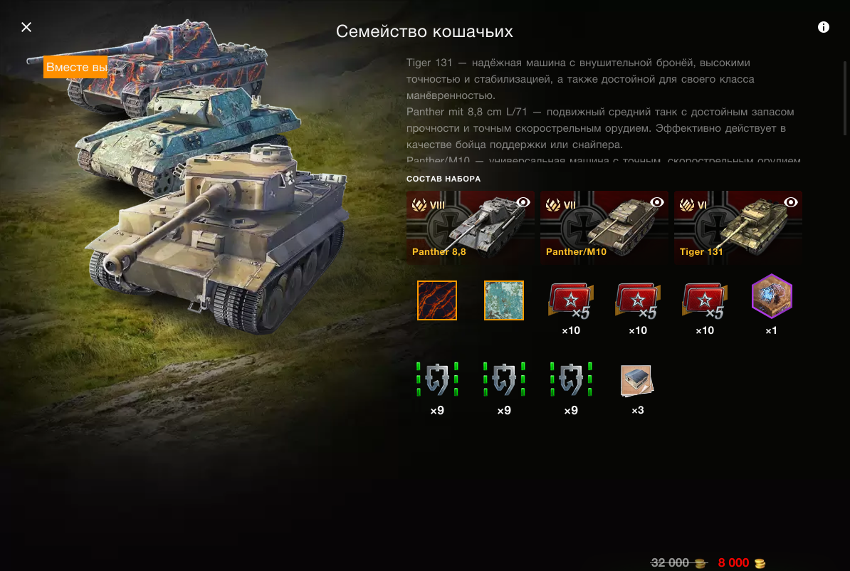 Передаю всем привет из глубин интернета. Заметили, что в последнее время нас начали баловать крутыми наборами в премиум магазине? Actiox X, Револьвер, СУ-130 ПМ и прочие весьма приятные аппараты по весьма вкусным ценам. Так вот, конец. Теперь у нас тут вот это. И мы сейчас по фасту пробежимся по этому сборнику уже явно подсохшей массы, чтобы я мог сказать, почему не советую это покупать. Panther 8.8 Чтобы вы знали, прокачиваемого собрата (Panther II) я вполне себе уважаю. Только вот это далеко не вторая пантера. Брони тут - 180 мм в самом толстом месте, т.е. танчить не вариант. Кататься тоже не вариант. Стрелять... Ну, можно. Но орудие такое, чуть выше среднего. Я бы тут или скинул перезарядку где-то до 4.8 секунд, или броню бы апнул до уровня обычной пантеры (которой скоро еще и ствол апнут). Краткий итог Короче, ни в коем случае не стоит тратить на это голду. Panther/M10 Предыдущую кису я не очень хвалил, а тут прям ругать буду. Танк ну очень устаревший. Настолько, что устарел он е