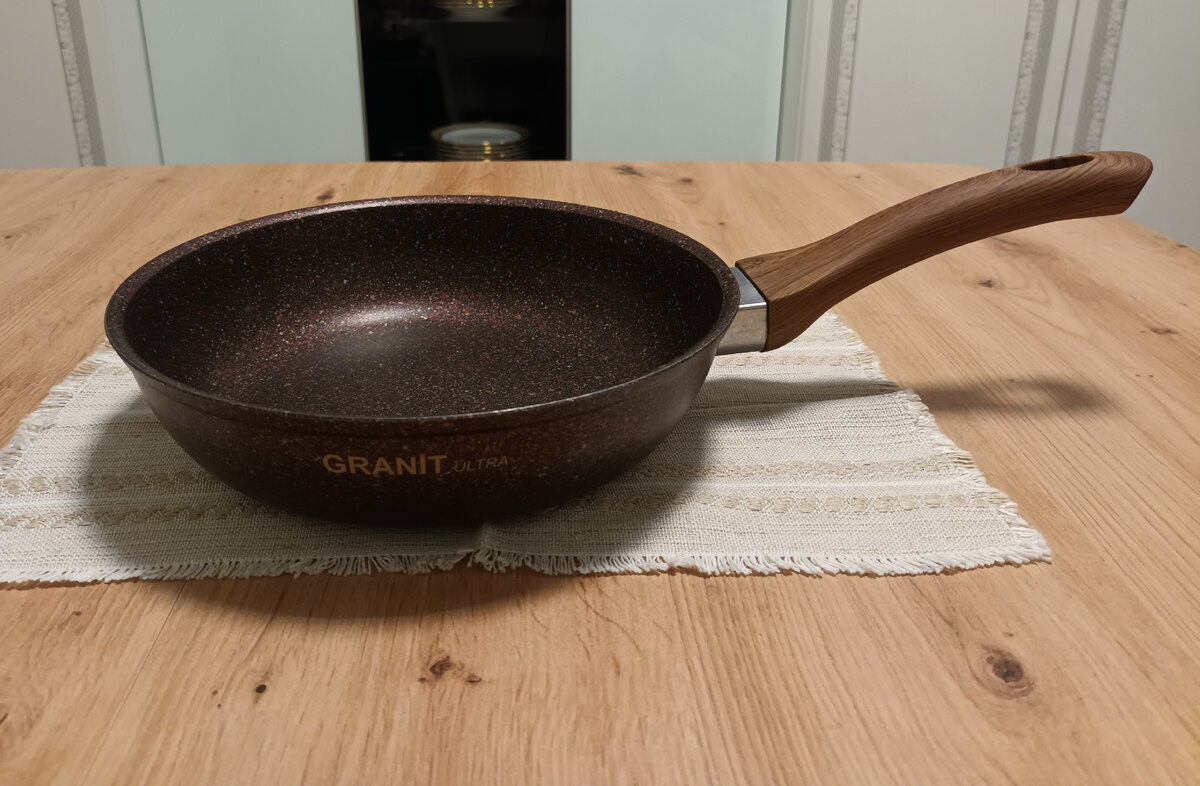 Для приготовления пищи очень важна качественная посуда. Это вопрос встаёт особенно остро, когда приходит время менять свои старые кастрюли и сковороды. На рынке сейчас такое обилие продавцов, что глаза разбегаются. Хочется, чтобы кухонная утварь совмещала в себе и качество, и современные технологии, и долговечность. И, конечно, адекватную стоимость. Всем этим параметрам для меня соответствует посуда нашего российского бренда Kukmara. У меня есть сковорода и кастрюля от этого производителя. Пользуюсь ими уже полгода и сейчас могу смело их рекомендовать Эта сковорода из литого алюминия с удобной бакелитовой ручкой. "Granit Ultra" - это прочное покрытие усиленное сверхтвёрдыми минералами, близкими по твёрдости алмазу. Сковорода имеет ровное дно и благодаря толщине стенок и дна не деформируется. Готовить в ней для меня одно удовольствие. Пища не пригорает даже с минимальным количеством масла. Сковороду можно мыть в посудомоечной машине, но чтобы дольше сохранить её покрытие, я мою вручную