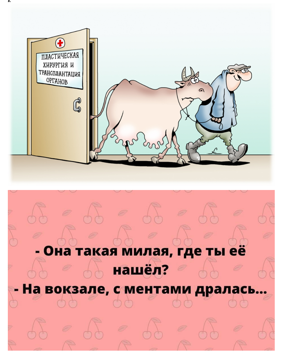 Еврейский новогодний тост: Все сбывается в канун Нового года. Даже то, что не произошло в течение года! *** - Скажите, ваш муж умер добровольно? - О, вы не говорите! У нее был врач... *** - Что ж, поздравляю! В тебе родилась новая жизнь! - Доктор... но я мужчина! - Да? Ну, вообще-то, червям все равно... *** *** Генерал идет по мосту, лениво оглядываясь по сторонам, и тут ему на глаза попадается солдат. Солдат, как обычно, отсутствует и хочет пройти мимо него, делая вид, что не замечает генерала. Общие сведения: - Солдат, почему ты не отдал честь?! Солдат: - Согласно статье 147 Положения о персонале, салютовать на мосту запрещено! Генерал растерялся, пошел домой, бегло просмотрел нормативные документы, нашел нужную статью, прочитал ее и был поражен: "П. 147. Солдат должен быть находчивым и храбрым. " *** Во время секса (она сверху) уставшая жена говорит - Давайте торговать! - Я не знаю... Что у тебя есть? *** - Доктор, вы знаете, - говорит смущенный молодой человек, - у моего знакомого