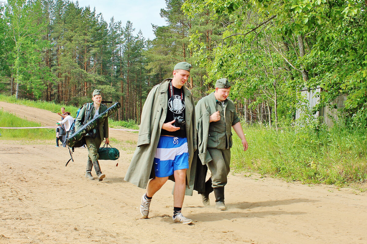 Чтобы успешно сражаться с врагом необходимо хорошо знать его сильные и слабые стороны, а для этого во всех армиях мира существует разведка. Поэтому устроители военно-исторического фестиваля «Бой за переправу» не сразу бросили противоборствующие войска на поле сражения, а предоставили жителем Соснового Бора и многочисленным гостям самим разобраться, кто и как воевать будет с нашими. Начало рассказа здесь: Первые нестройные колонны вражеских солдат были замечены ещё на подступах к передовой, и хотя их внешний вид был далёк от парадного, опытному разведчику он многое говорил, например, как они маскируются. Следом за пехотой шёл обоз, состоящий преимущественно из близких родственников наступающих, что заметно замедляло скорость продвижения основных сил, вдобавок между обеими сторонами периодически возникали конфликты на почве войны и мира. Тогда солдаты останавливались и по мобильным телефонам связывались со своими командирами, надеясь у тех найти совета, идти вперёд или повернуть обратн
