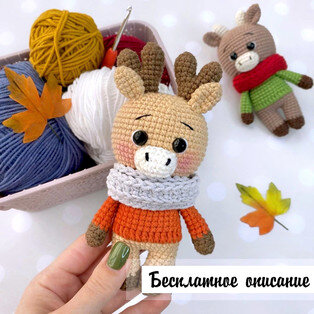 Бесплатный мастер-класс от Валерии @vivi_toys по вязанию оленя крючком. Высота вязаной игрушки примерно 14 см. Для изготовления такого маленького оленёнка автор использовал пряжу YarnArt Jeans и крючок 2 мм. Ножки, тело и голова оленя вяжутся одной деталью, ручки ввязываются в процессе вязания тела. Из описания схемы вы также узнаете как связать снуд для украшения нашего оленёнка.