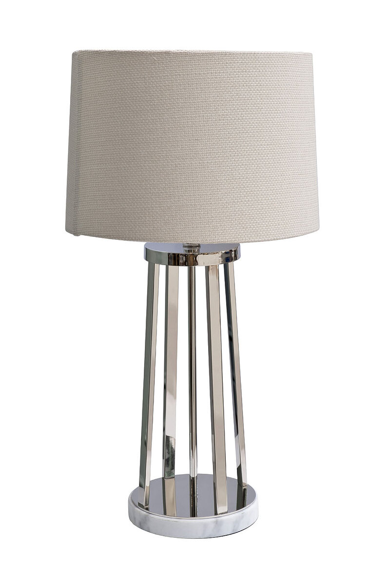 Ее можно поставить на консоль в прихожую или использовать в качестве подсветки для зеркала или картины. Сочетание блестящего металлического основания и матового текстильного абажура придает лампе особенной элегантности и стиля.