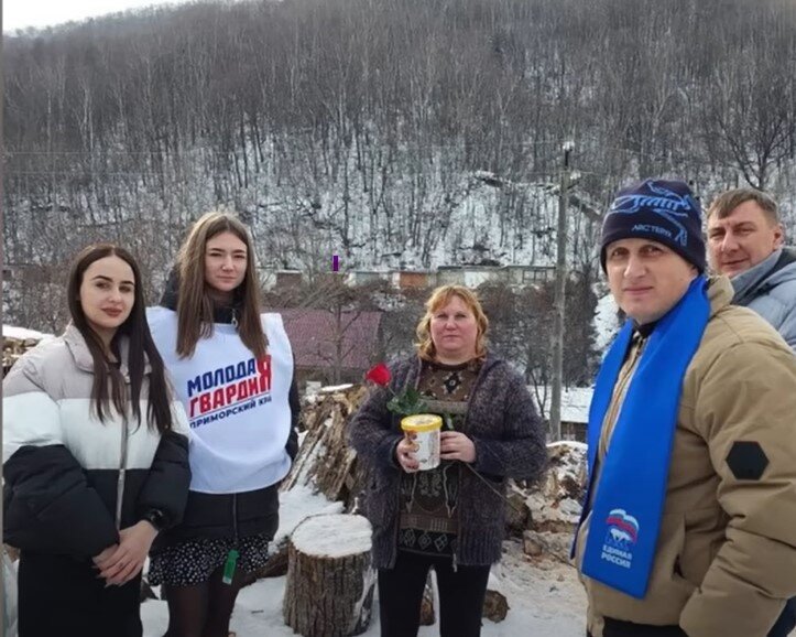 Народ, здравствуй. Вот правда, не понимаю, зачем все ходят и ходят в семьи, откуда ребята пошли на СВО? То полотенца дарят, то дрова подвозят. А главное: все фотографируются. Вон и здесь. Справа двое здоровых мужиков запечатлели себя. Подарили женщине из Приморья, у которой кто-то ушел туда, розочку и банку мороженого, - сразу фотка. И Молодая гвардия тут же. А. может, то не мороженое, а банка майонеза? Но, видимо, сама женщина тоже рада и тоже любит фотографироваться. Услышимся)))