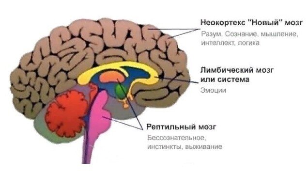Ребенок рождается, сначала у него формируется рептильный мозг, затем лимбическая система, и потом неокортекс.