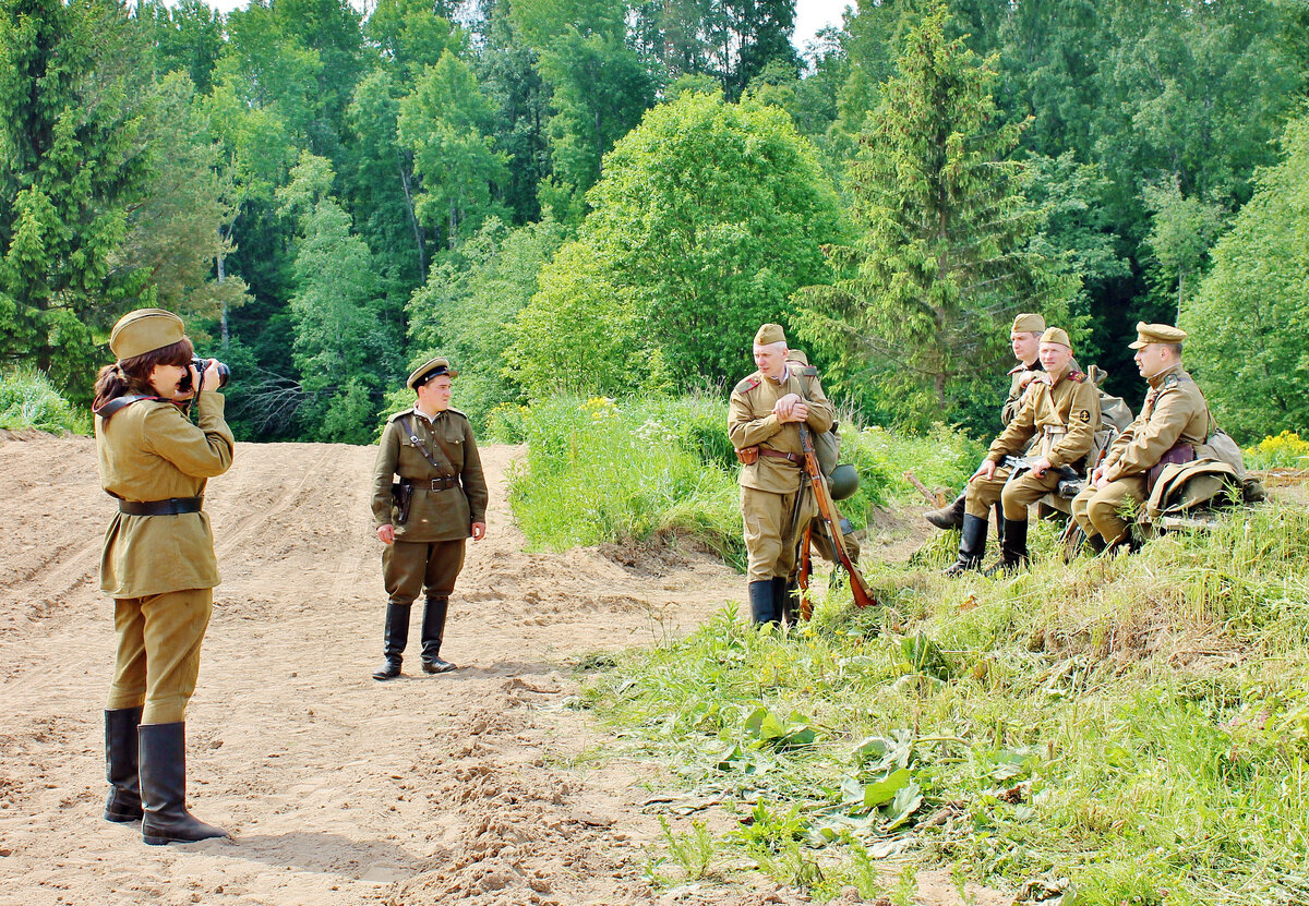 Например, в расположении одной из наших воинских частей, зенитной батареи, где несут службу одни только девушки, что во время войны являлось не редкостью. На фронтах существовали целые дивизионы таких орудий, в которых служили преимущественно женщины. В отечественном фильме 1972 года «…А зори здесь тихие» это очень правдиво показано.
