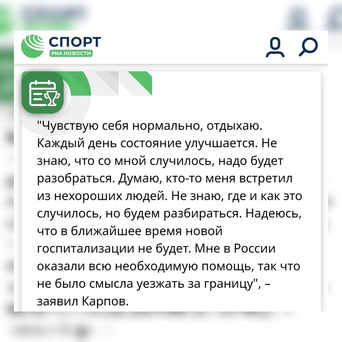 Показания начинают сильно расходиться: от "поскользнулся - упал - пневмония" (жена и помощники Карпова) до "Не знаю, где и как это случилось. Думаю, кто-то меня встретил из нехороших людей" (сам Карпов).